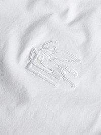 Plain-coloured pure cotton crew-neck T-shirt. The tonal embroidered ETRO monogram and iconic Pegaso symbol stand out on the chest. • Regular fit • Made in Italy • The model is 6' 1½" (187 cm) tall and wears a size M PRODUCT DETAILS • 100% cotton