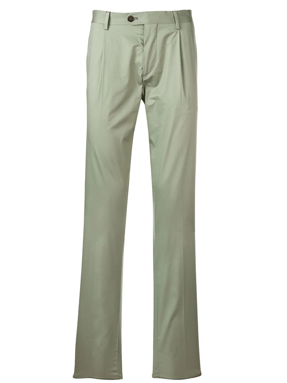 tailored trousers Mud green cotton blend tailored trousers from ETRO featuring a button and zip fly, side slit pockets, a waistband with belt loops and back buttoned welt pocket. Made in Italy Composition Cotton 97%, Spandex/Elastane 3% SIZE & FIT Model measurements Height 6 ft 2 in(1.87 m) Bust/Chest 38.18 in(97 cm) Hips 36.61 in(93 cm) Waist 29.13 in(74 cm) Washing instructions Machine Wash