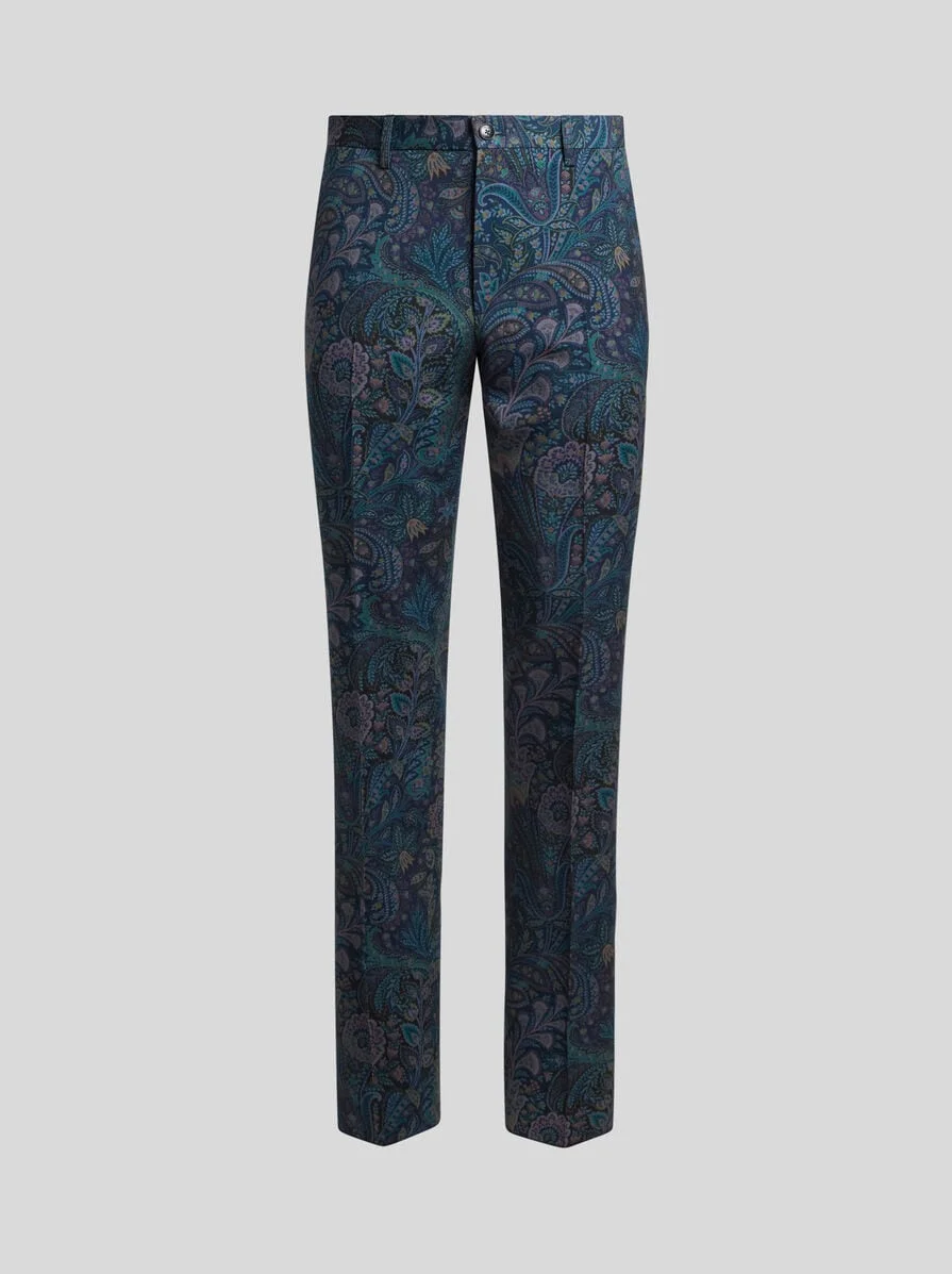 Tailored trousers in pure wool fabric with multicoloured all-over floral-inspired motif. This model is complete with a small embroidered Pegaso logo on the back. • Regular fit • Slant pockets at the front • Rear button-through welt pockets • Concealed zip and button closure • Made in Italy • The model is 6' 1" (186 cm) tall and wears a size 48 PRODUCT DETAILS • 100% wool