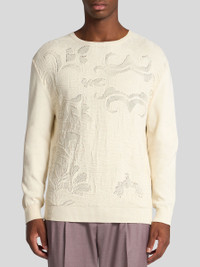 Pure cotton crew-neck sweater with distinctive detailing on the front. The ribbed neck, cuffs and hem complement the piece. • Regular fit • Crew neck • Ribbed finishes • Made in Italy • The model is 6' 1½" (187 cm) tall and wears a size M PRODUCT DETAILS • 100% cotton