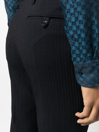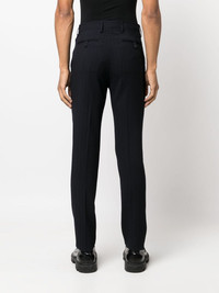textured-finish tailored trousers Highlights - Navy blue - Silk virgin-wool blend - Textured finish - Tailored cut - Mid-rise - Slim cut - Belt loops - Two rear button-fastening jetted pockets - Front button and zip fastening Made in Italy Composition Outer: Virgin Wool 99%, Elastane 1% Lining: Acetate 60%, Viscose 40% SIZE & FIT Model measurements Height 6 ft 2 in(1.87 m) Bust/Chest 38.18 in(97 cm) Hips 36.61 in(93 cm) Waist 29.13 in(74 cm) FittingInformation Designed for a slim fit, offering a comfortable fit that sits just away from the leg The unfinished hems allow for the length to be altered Made from a midweight stretch fabric, this piece offers elasticity and flexibility when worn This piece fits true to size – take your usual size
