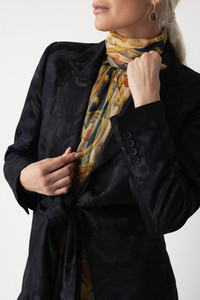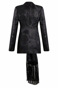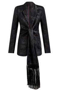 DETAILS AND INSIGHT Etro tie front fringe blazer in black. 42% Viscosa 33% Seta 25% Poliammide Dry clean Made in Italy Style WRCA0062-99TJA52-N0000