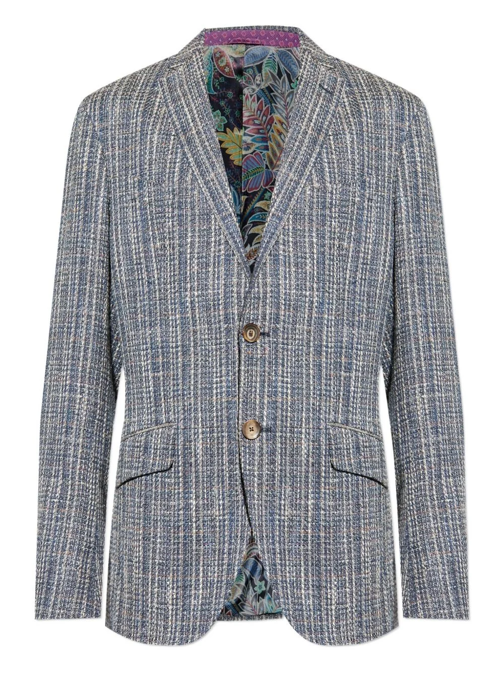 tweed blazer Highlights - Blue - Tweed - Three button fastening - Flap pockets - Notched lapels - Straight hem Made in Italy Composition Outer: Cotton 99%, Elastane 1% Lining: Viscose 100% Washing instructions Read Manufacturer Guidelines