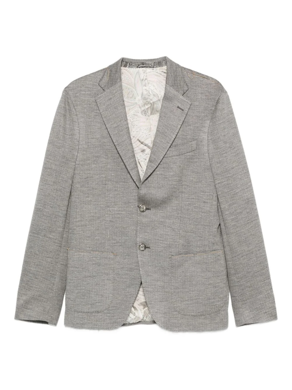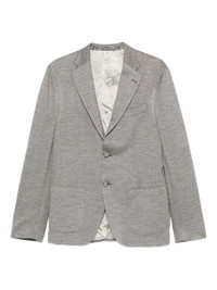 two-button patch-pocket blazer Highlights - Grey - Two-button fastening - Patch pockets - Notched lapels - Long sleeves - Straight hem Made in Italy Composition Outer: Viscose 57%, Wool 49%, Polyester 43%, Silk 30%, Linen/Flax 21% Lining: Viscose 100% Washing instructions Dry Clean Only