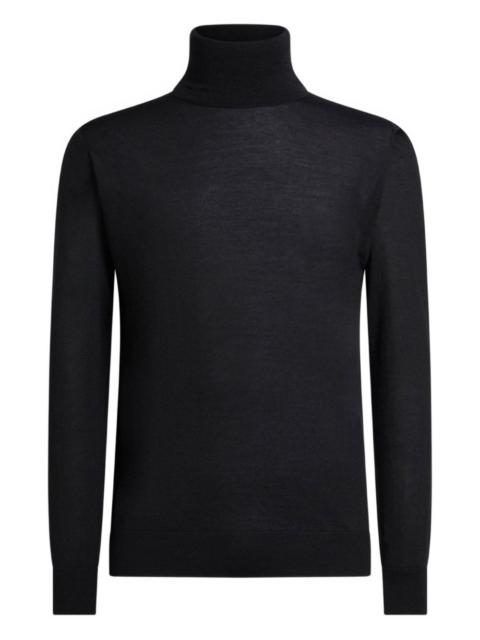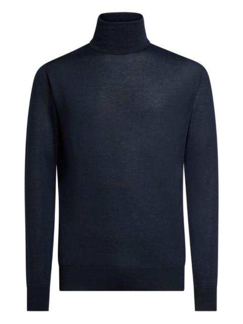 virgin wool turtleneck sweater Highlights - Dark blue - Turtleneck neck - Long sleeves - Silk - Ribbed hem Made in Italy Composition Virgin Wool 100% Washing instructions Read Manufacturer Guidelines