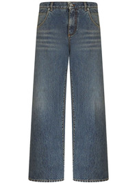 wide-leg cropped cotton jeans Highlights - Navy blue - Cotton - Whiskering effect - Belt loops - Classic five pockets - Wide leg - Cropped leg - Front button and zip fastening Made in Italy Composition Cotton 100%