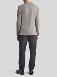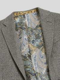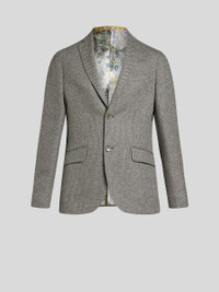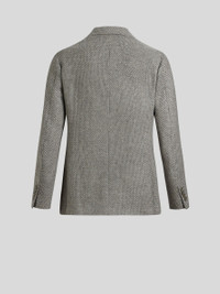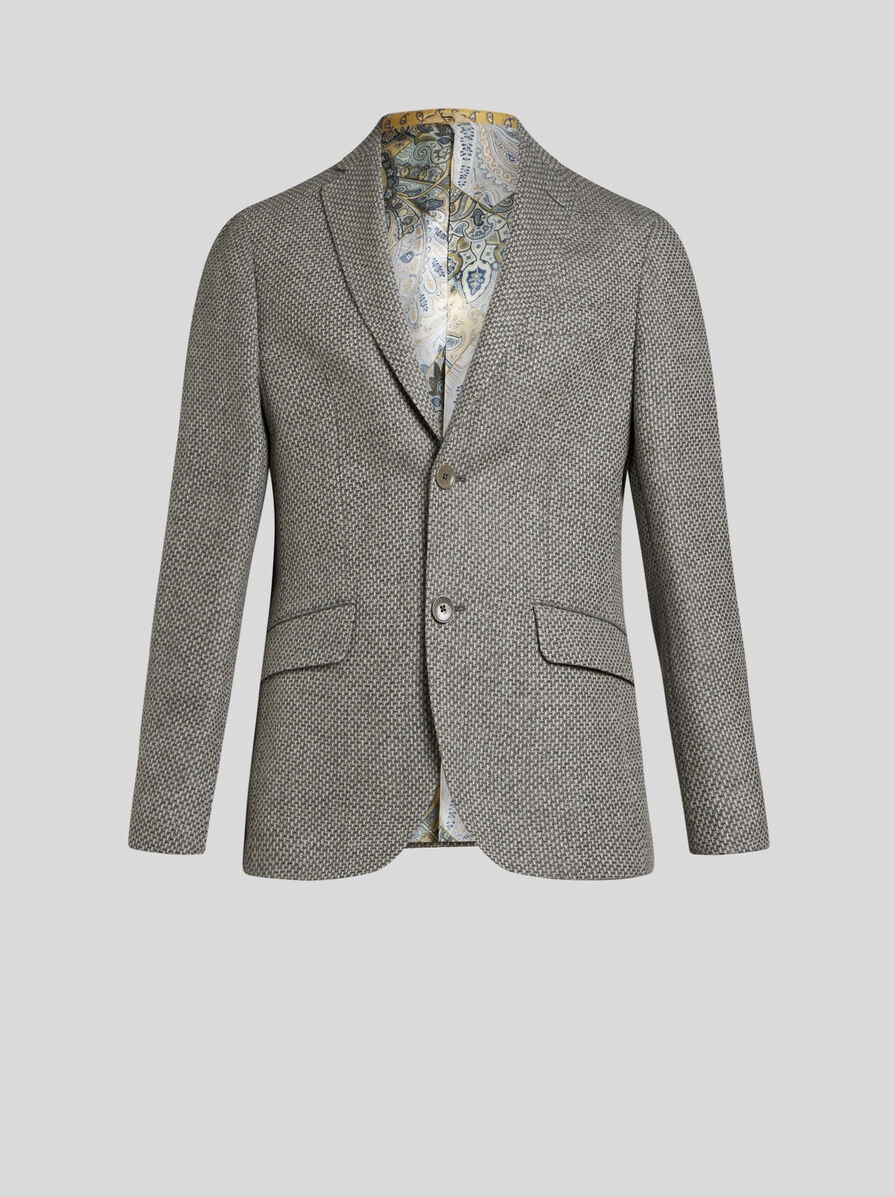 Single-breasted blazer in wool and cashmere with decorative micro motif and contrasting micro Paisley-patterned jacquard undercollar. The inner lining features a decorative patchwork Paisley print. PRODUCT DETAILS • 97% wool, 3% cashmere
