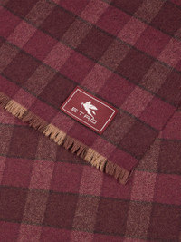 Scarf in warm wool- and cashmere-blend fabric with check motif. This accessory is complete with slightly frayed short sides and a tailor's label bearing the Pegaso symbol and ETRO logo at the end. • Size: 70.9 x 21.7 inches (180 x 55 cm) • Made in Italy PRODUCT DETAILS • 85% wool, 15% cashmere