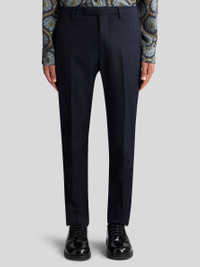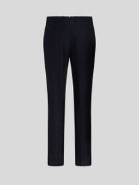 Evening trousers in wool and cotton jacquard with pressed creases and tone-on-tone graphic motif. • Slim fit • Side slip pockets • Rear welt pockets • Zip closure • The model is 74.01" (188 cm) tall and wears a size 48 (IT) • Made in Italy PRODUCT DETAILS • 53% cotton, 47% wool
