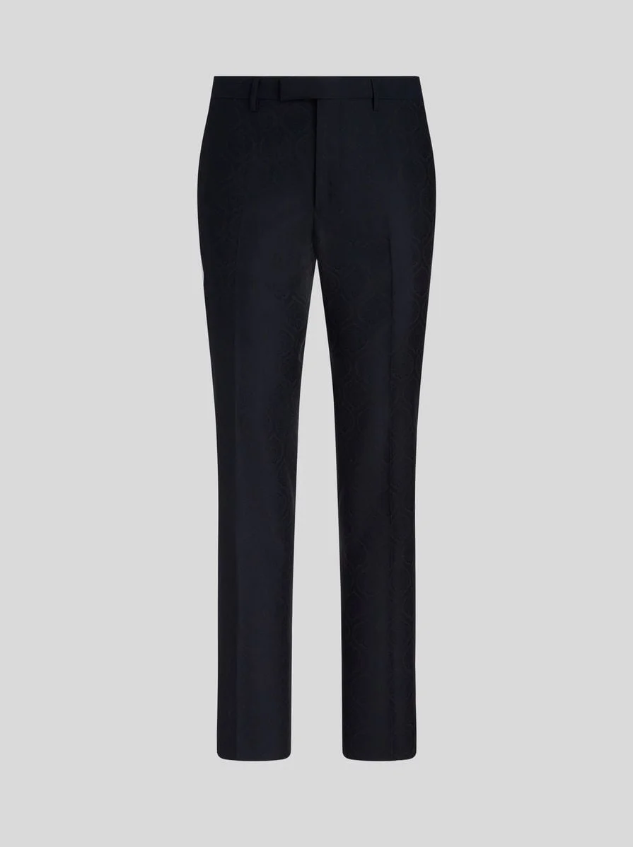 WOOL AND COTTON JACQUARD TROUSERS