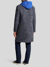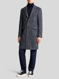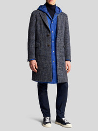 Wool-blend coat. This model features a contrasting undercollar with micro medallions and inner lining embellished with a graphic, enchanted forest-inspired print that evokes the paintings of Henri Rousseau. PRODUCT DETAILS • 90% wool, 10% polyamide • Sleeves: 52% viscose, 48% acetate • Lining: 100% viscose
