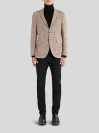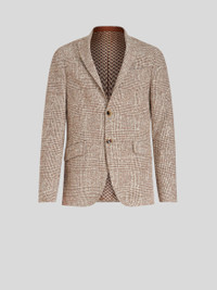 Mixed wool jacket decorated by a check pattern and features a lining with micro tie print patterns. PRODUCT DETAILS • 45% alpaca, 35% wool, 20% polyamide • Interior: 50% viscose, 50% cupra • Sleeves: 100% viscose • Regular fit • Single-breasted fastening • Piped breast pocket • Front pockets with flap • Piped inside pockets • Rear slits • Length 74 cm / 29.13 inches • Made in Italy • The model is 188 cm / 74,01 inches tall and wears size 48