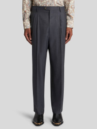 Wool jacquard trousers with striped design. This model features two darts highlighted by contrasting decorative tacking and a pressed crease. • Regular fit • Hidden button and zip closure • Side slip pockets • Back pockets, one fastened by a button and the other by contrasting decorative tacking • Made in Italy • The model is 6’2” (188 cm) tall and wears a size 48 (IT) PRODUCT DETAILS • 100% wool • Lining: 60% viscose, 40% acetate
