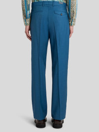 Straight-leg trousers in plain-coloured pure wool with front pleats and pressed creases. • Regular fit • Fastened with concealed zip and off-centre branded button • Side slip pockets • Welt pocket with flap and button at the back • Made in Italy • The model is 6' 1½" (187 cm) tall and wears a size 48 PRODUCT DETAILS • 100% wool