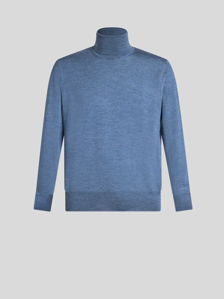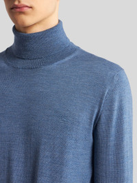 Wool turtleneck sweater, embellished with tone-on-tone embroidered Pegaso symbol and ETRO logo on the chest. • Regular fit • Turtleneck • Ribbed hems • Made in Italy • The model is 6’1”(186 cm) tall and wears a size M PRODUCT DETAILS • 100% wool