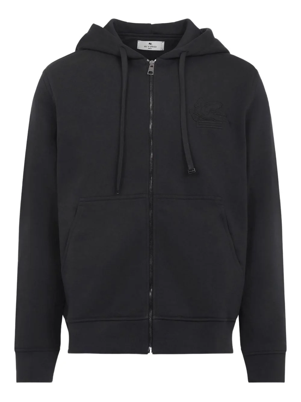 zip-up pouch-pockets cotton hoodie Highlights - Black - Front zip fastening - Front pouch pockets - Drawstring hood - Ribbed cuffs - Ribbed hem Made in Italy Composition Cotton 90%, Polyester 10% Washing instructions Read Manufacturer Guidelines