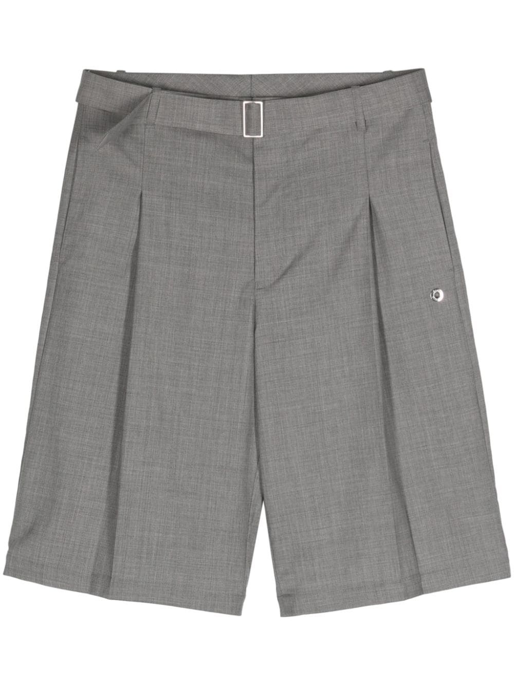 Cooper wool pleated shorts Highlights - Medium grey - Virgin wool - Textured finish - Belted waist - Pleat detailing - Two side inset pockets - Two rear welt pockets - Knee-length - Concealed front button, hook and zip fastening - When buying this unisex item, keep in mind that it is graded in standard men's sizing. Imported Composition Lining: Viscose 100%, Polyester 64%, Cotton 36% Outer: Virgin Wool 100%