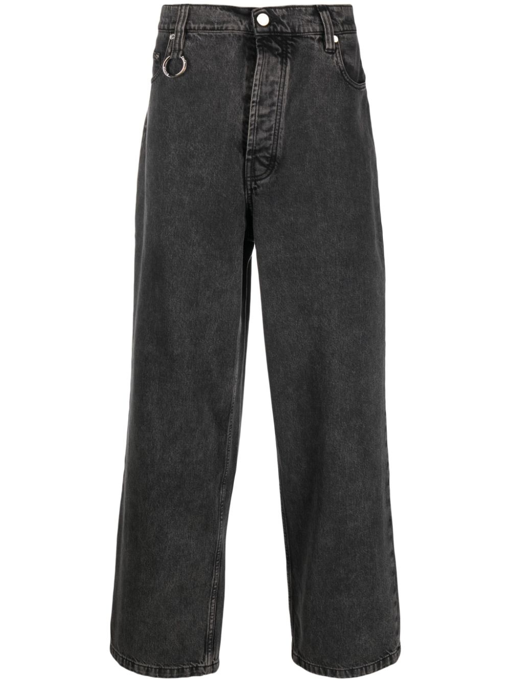 District mid-rise loose-fit jeans Highlights - Black - Organic cotton - Washed denim - Logo patch to the rear - Ring embellishment - Mid-rise - Belt loops - Straight leg - Button fly fastening - Classic five pockets - Straight hem Imported Composition Organic Cotton 100% SIZE & FIT Model measurements Height 6 ft 1 in(1.86 m) Bust/Chest 37.4 in(95 cm) Hips 36.22 in(92 cm) Waist 29.52 in(75 cm) FittingInformation This piece is unisex and is designed with a straight-cut over the leg whether you usually select women's or men's sizes Sturdy and hard-wearing, this denim piece offers no stretch Washing instructions Machine Wash