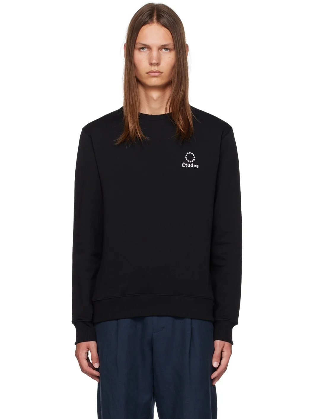 340 g organic cotton fleece sweatshirt. · Rib knit crewneck, hem, and cuffs · Logo graphic embroidered at chest Supplier color: Black 100% organic cotton. Made in Portugal 232647M204008