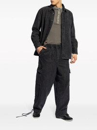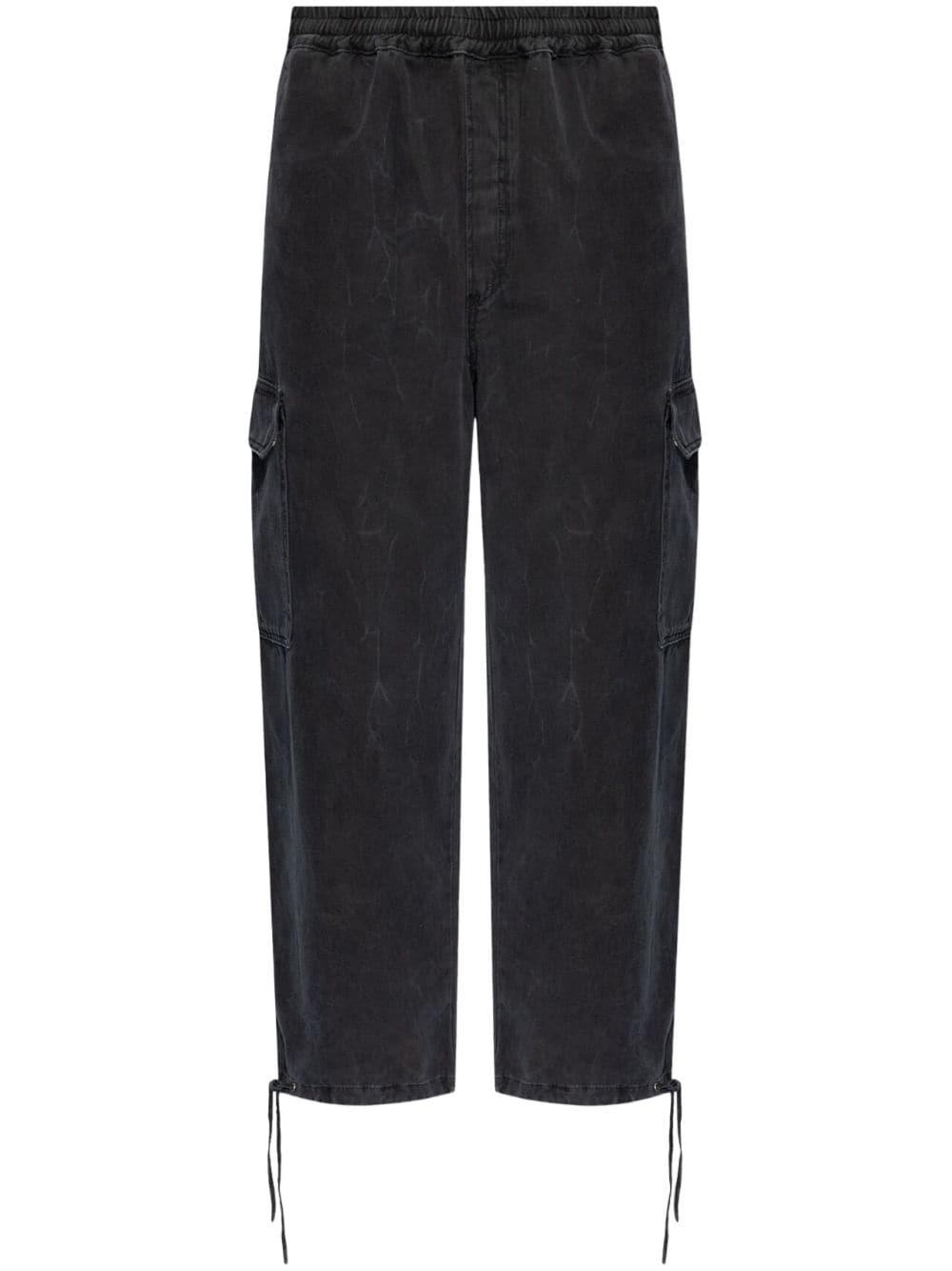 Forum canvas cargo trousers Highlights - Black - Cotton-linen blend - Canvas - Crinkled finish - Logo tag - Mid-rise - Elasticated drawstring waistband - Two side slash pockets - Two side cargo pockets - Two rear flap pockets - Wide leg - Drawstring hem Imported Composition Cotton 58%, Linen/Flax 42%