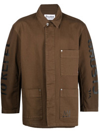 graphic-print denim jacket auburn brown graphic-print sleeves classic collar concealed front fastening long sleeves three front patch pockets Imported Composition Fabric 100% SIZE & FIT Model measurements Height 6 ft 2 in(1.89 m) Bust/Chest 35.03 in(89 cm) Hips 38.18 in(97 cm) Waist 29.92 in(76 cm) FittingInformation This piece fits true to size. We recommend you get your regular size Cut for a loose fit Made with a mid-weight non-stretch fabric Washing instructions Dry Clean Only