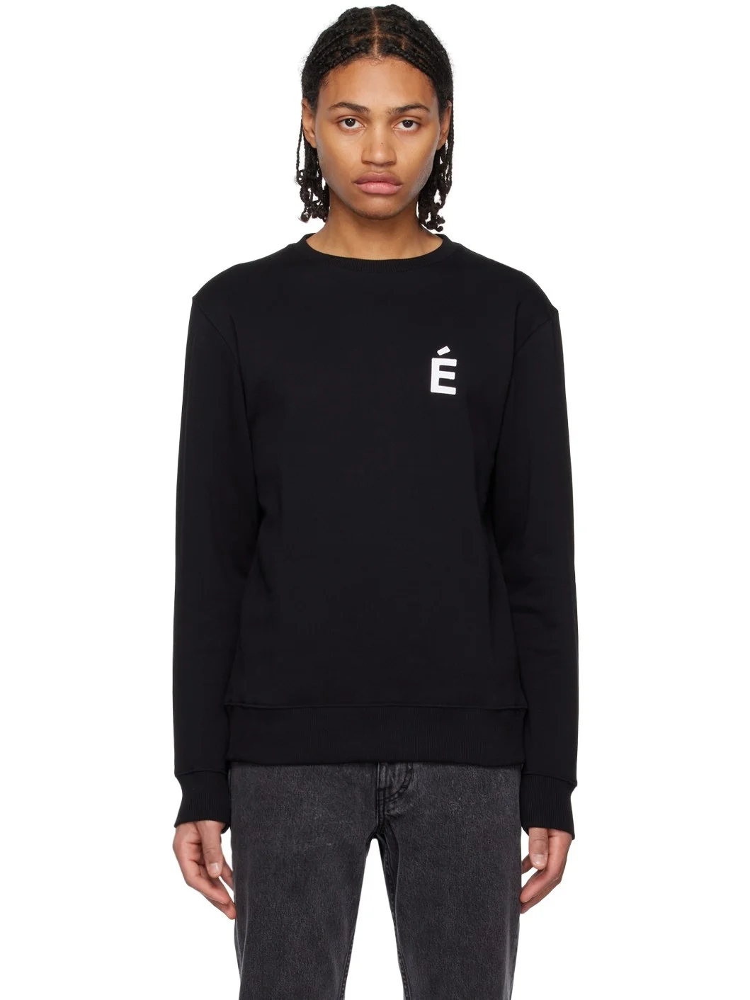 Organic cotton fleece sweatshirt. · Rib knit crewneck, hem, and cuffs · Textile logo patch at chest Supplier color: Black