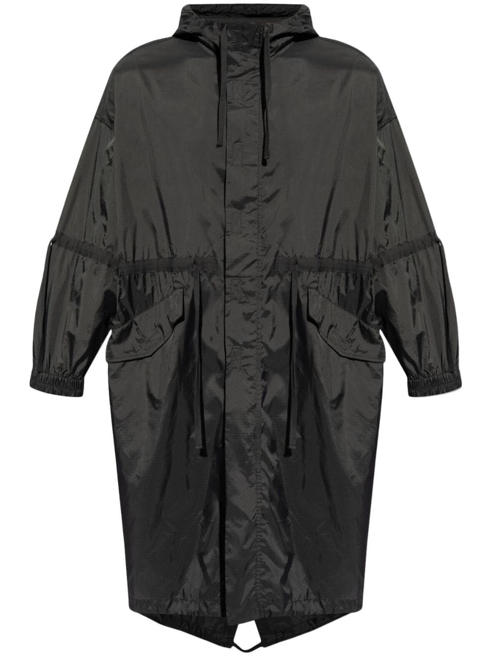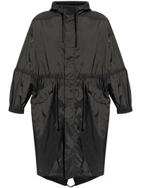 logo-print ripstop parka coat Highlights - Black - Ripstop texture - Logo print to the rear - Text print - Drawstring hood - Concealed front zip fastening - Drop shoulder - Long sleeves - Elasticated cuffs - Drawstring waist - Two side flap pockets - Mid-length - Elasticated hem Imported Composition Nylon 100%