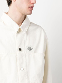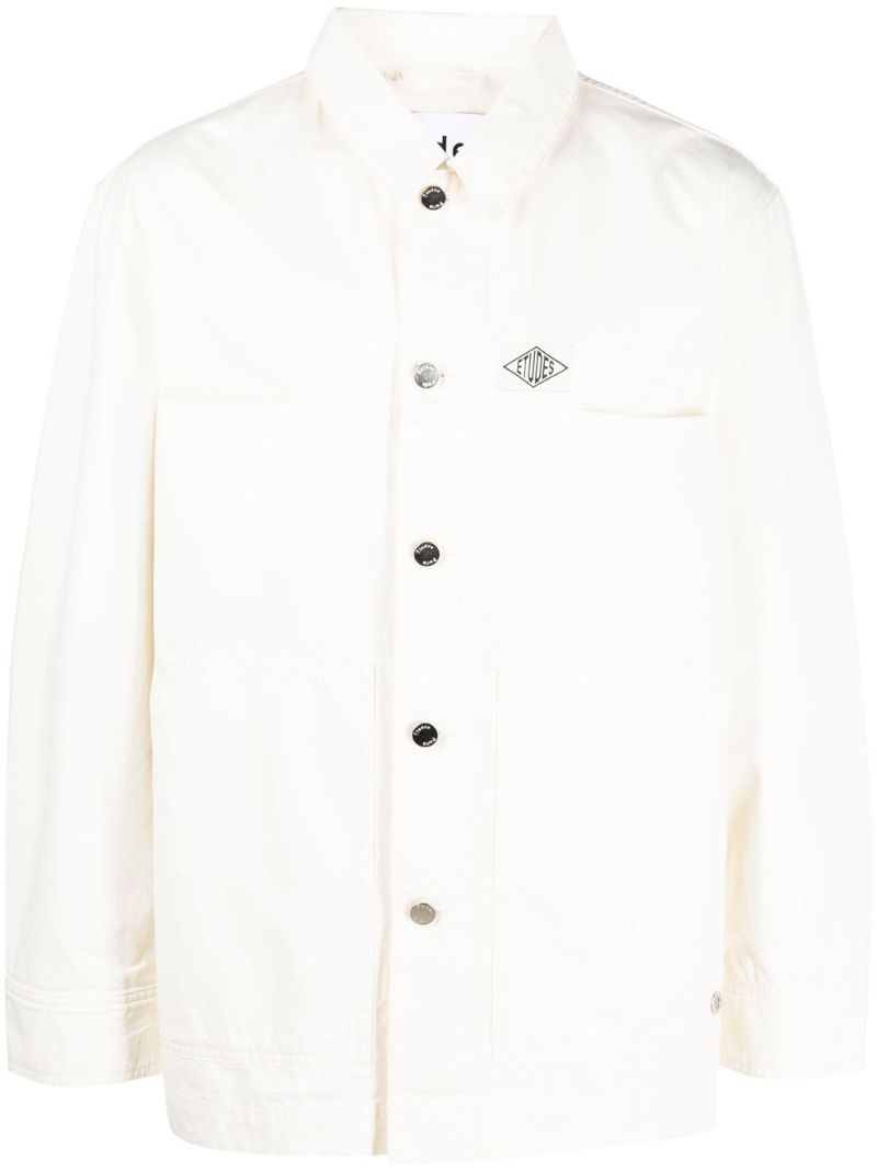 long-sleeve button-up shirt long-sleeve button-up shirt from Etudes featuring off-white, cotton, logo patch at the chest, classic collar, front button fastening, tonal stitching, buttoned cuffs and straight hem. Imported Composition Cotton 100% SIZE & FIT Model measurements Height 6 ft 2 in(1.87 m) Bust/Chest 35 in(89 cm) Hips 35 in(89 cm) Waist 28 in(71 cm) FittingInformation This piece fits true to size. We recommend you get your regular size Cut for a loose fit Made with a mid-weight non-stretch fabric