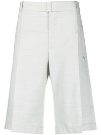 pleated wide-leg shorts grey pleat detailing belted waist silver-tone logo plaque front button and zip fastening two side inset pockets two rear welt pockets straight hem Imported Composition Lining: Polyester 64%, Cotton 36% Outer: Wool 69%, Polyamide 16%, Viscose 14%, Spandex/Elastane 1% SIZE & FIT Model measurements Height 6 ft 1 in(1.85 m) Bust/Chest 35.82 in(91 cm) Hips 37.79 in(96 cm) Waist 29.13 in(74 cm) Washing instructions Dry Clean Only