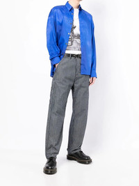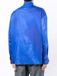 spray-effect satin shirt Highlights - Organic cotton - Blue - Spray-paint effect - Satin finish - Long sleeves - Classic collar - Front button fastening Imported Composition Organic Cotton 100% SIZE & FIT Model measurements Height 6 ft 0 in(1.84 m) Bust/Chest 35.43 in(90 cm) Hips 35.82 in(91 cm) Waist 28.74 in(73 cm) FittingInformation This piece fits true to size. We recommend you get your regular size Cut for a loose fit Made with a lightweight non-stretch fabric Washing instructions Machine Wash