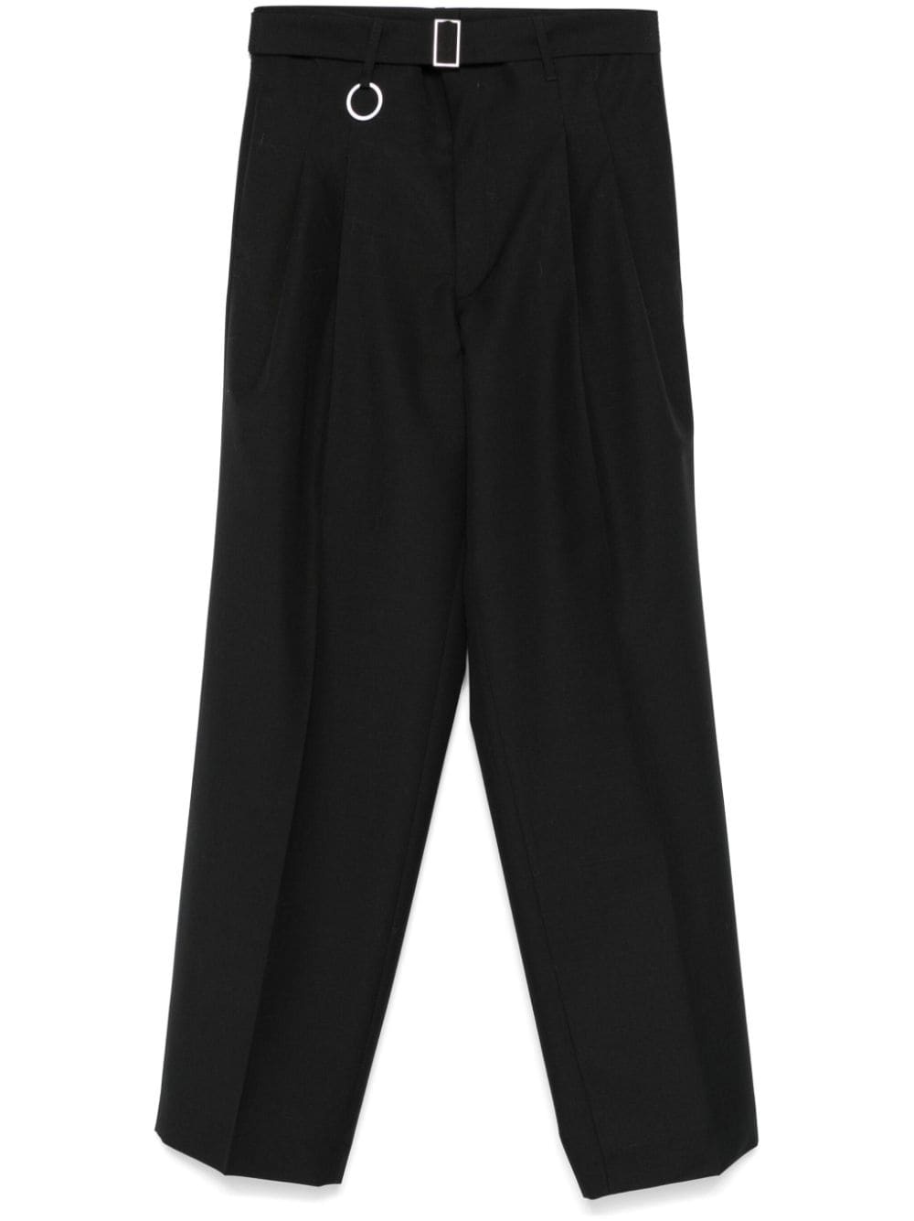 wide-leg trousers Highlights - Black - Interlock twill weave - Concealed front fastening - Belt loops - Belted waist - Mid-rise - Ring hardware detailing - Pleat detailing - Pressed crease - Two side slit pockets - Two rear welt pockets - Tailored cut - Wide leg - When buying this unisex item, keep in mind that it is graded in standard men's sizing. Imported Composition Outer: Polyester 55%, Wool 35%, Mohair 10% Lining: Viscose 100%, Polyester 64%, Cotton 36% SIZE & FIT Model measurements Height 5 ft 9 in(1.76 m) Bust/Chest 34.25 in(87 cm) Hips 35.82 in(91 cm) Waist 23.62 in(60 cm) FittingInformation This piece is unisex and is designed with a wide-leg, whether you usually select women's or men's sizes The belt offers adjustability for fitted preferences Made from a midweight non-stretch fabric