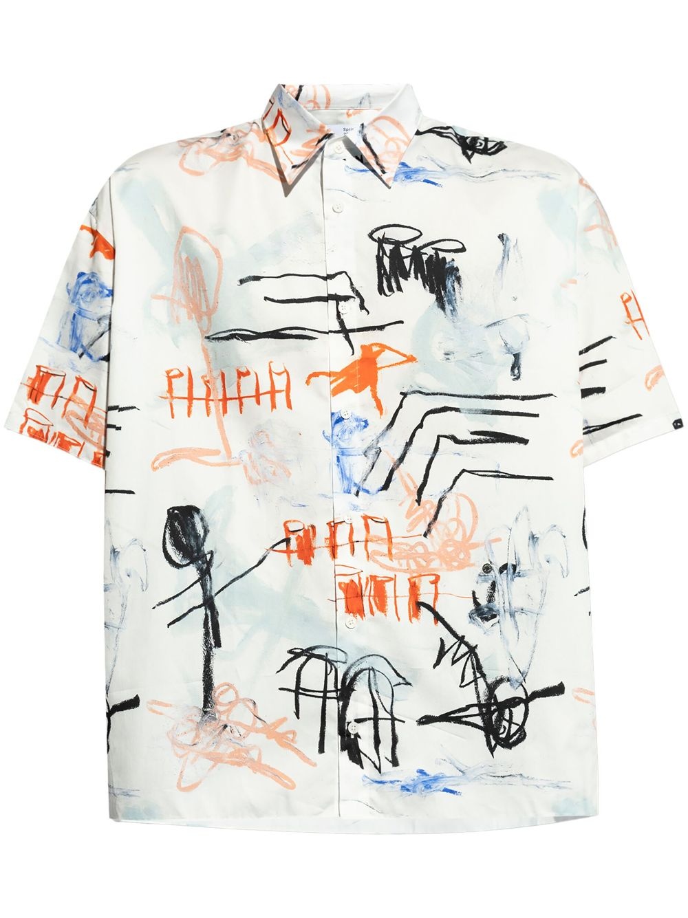 x Julian Farade Illusion cotton shirt Highlights - White/multicolour - Organic cotton - Poplin texture - Abstract pattern print - Rivet detailing - Mother-of-pearl buttons - Spread collar - Front button fastening - Drop shoulder - Short sleeves - Straight hem Imported Composition Organic Cotton 100%