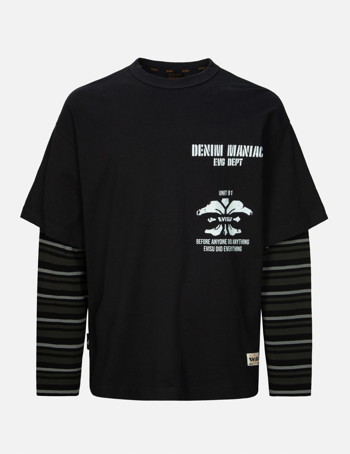 2ESHTM4TL8047LFCT This 2-in-1 T-shirt features striped contrast sleeves as a highlight, with brand prints as the main theme. The coordinating Kamon and slogan prints on the front and back, along with the brand logo and Seagull print on the back, showcase the unique style of the brand. FIT & STYLING: LOOSE CARE MACHINE WASH COLD INSIDE OUT DELICATE CYCLE DO NOT BLEACH HANG DRY ONLY COOL IRON ON REVERSE SIDE IF NEEDED STEAM IRONING MAY CAUSE IRREVERSIBLE DAMAGE DO NOT DRY CLEAN DO NOT IRON ON PRINT