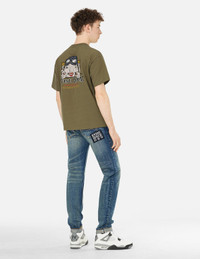 2ESHTM5TS7020RXCT This T-shirt features a vintage Godhead print as its theme, with the Godhead wearing sunglasses and appearing to peek out as if on an adventure. The slogan "NO RISK NO FUN" conveys a fearless attitude, while the front is adorned with logo embroidery and a Seagull print. - Relax fit - 100% Cotton - Adventure Godhead, slogan and Seagull print - Logo embroidery