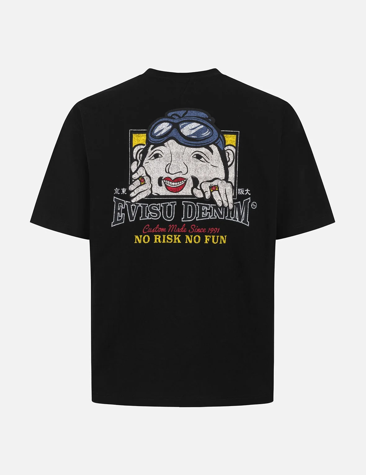 2ESHTM5TS7020RXCT This T-shirt features a vintage Godhead print as its theme, with the Godhead wearing sunglasses and appearing to peek out as if on an adventure. The slogan "NO RISK NO FUN" conveys a fearless attitude, while the front is adorned with logo embroidery and a Seagull print. - Relax fit - 100% Cotton - Adventure Godhead, slogan and Seagull print - Logo embroidery