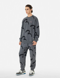 ALLOVER BRUSHSTROKE SEAGULL AND LOGO PRINT RELAX FIT SWEATSHIRT