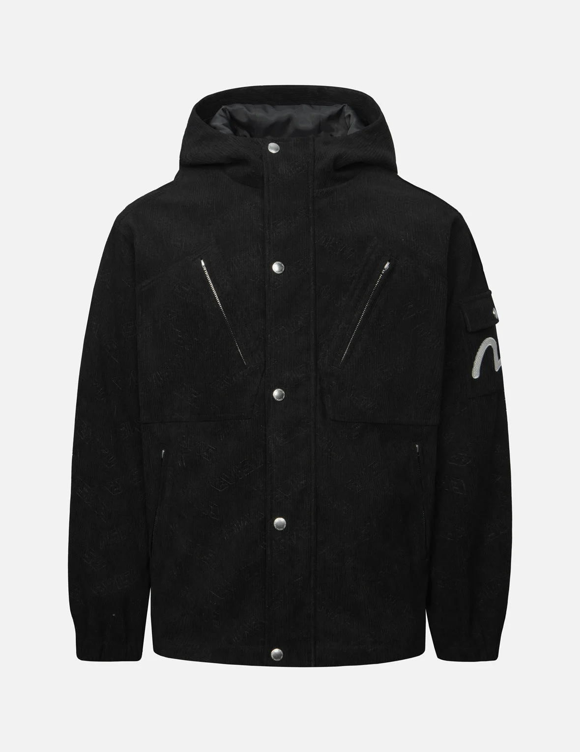 ALLOVER DEBOSS LOGO AND SEAGULL EMBROIDERY LOOSE FIT HOODED CORDUROY JACKET