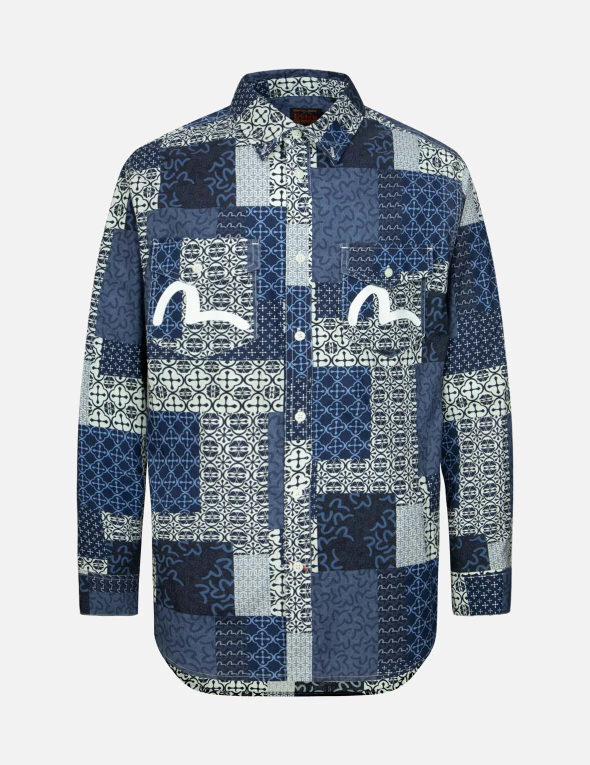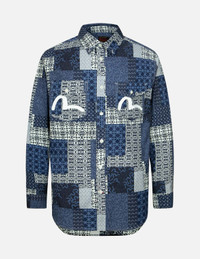 2ESHTM4SL7019RXCT Retains Japanese elements and traditional craftsmanship while incorporating a unique style influenced by popular culture, this shirt is crafted from 100% cotton with a simulated patchwork pattern, emulating the asymmetric patchwork technique found in traditional Japanese Boro textiles. The front pockets are adorned with a classic seagull print, injecting a fashionable appeal into the garment. FIT & STYLING: RELAX CARE HAND WASH INSIDE OUT AND SEPARATELY DO NOT BLEACH HANG DRY ONLY DO NOT IRON DO NOT DRY CLEAN DO NOT IRON ON PRINT