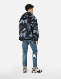 2EAHTM4JK8023LFYQ Embrace a playful spirit with this quilted jacket, inspired by the theme "Golden Fortune Day." Adorned with whimsical Godhead prints that radiate joy and symbolize wealth, this piece embodies prosperity and adds a lively touch to your wardrobe. - Loose fit - 100% Polyester - Allover Godhead print - Zip fastening, 2 pockets