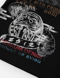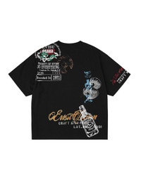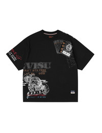 2EAHTM5TS1190XXCT This T-shirt ignites a fashion revolution with its dynamic hand-drawn artistry! The design artfully blends the profound imagery of Daruma, the daring allure of a wine bottle, and the whimsical charm of poker cards, enhanced by EVISU’s signature slogan for an unparalleled visual impact. Infused with timeless trendy elegance, it effortlessly showcases personal flair while exuding a subtle, luxurious sophistication! - Regular fit - 100% Cotton - Hand-drawing design - Daruma, wine bottles, poker, slogan prints - EVISU Premium Quality Kamon tag
