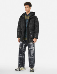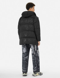 2EAHTM4NC1030XXSN This down coat is characterized by its distinctive design, featuring an allover heat seal print and brand applique. The unique patterns and exquisite details make this coat not only warm but also stylish. - Regular fit - 100% Polyester - Allover heat seal print and logo applique - Zip fastening, 4 pockets, hood