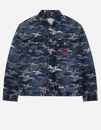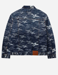 Allover Seagull Cranes Jacquard Loose Fit Denim Jacket