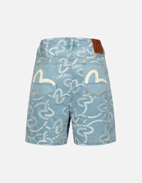 2ESHTM4DS1047OSDN EVISU's denim shorts showcase a diverse and rich blend of textures through the carefully designed repetition of seagull patterns. Both back pockets feature seagull prints, adding a highlight and displaying the brand's unique fashion charm. FIT & STYLING: OVERSIZE CARE MACHINE WASH COLD INSIDE OUT AND SEPARATELY DELICATE CYCLE DO NOT BLEACH HANG DRY ONLY COOL IRON ON REVERSE SIDE IF NEEDED STEAM IRONING MAY CAUSE IRREVERSIBLE DAMAGE DO NOT DRY CLEAN DO NOT IRON ON PRINT
