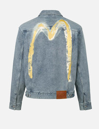 Artistic Brush Daicock Print Relax Fit Denim Jacket