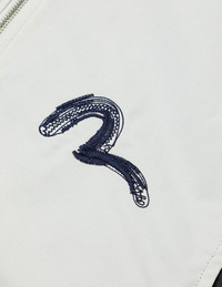 2ESHTM5VS1164FFCP Combining light workwear and Japanese-inspired details, this vest jacket is a standout piece in modern fashion. The intricate embroidery reimagines traditional Japanese aesthetics, featuring a seagull design on the front and the EVISU logo and slogan on the back, creating a harmonious artistic appeal. With two functional pockets, it elevates both practicality and the luxurious appeal of workwear. - Fashion fit - 62% Cotton, 38% Polyester - Artistic logo, Seagull and slogan embroidery - Zip fastening, 2 pockets - EVISU Premium Quality Kamon tag