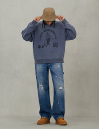 2EAEJM5SW6018RXFL This sweatshirt draws inspiration from vintage workwear in classic American culture, featuring EVISU's unique bowling print to showcase a distinctive fashion attitude. Whether paired with jeans or casual pants, it adds personality and charm to your look, making it an ideal choice for everyday wear. - Relax fit - 100% Cotton - Bowling workwear print - Seagull applique
