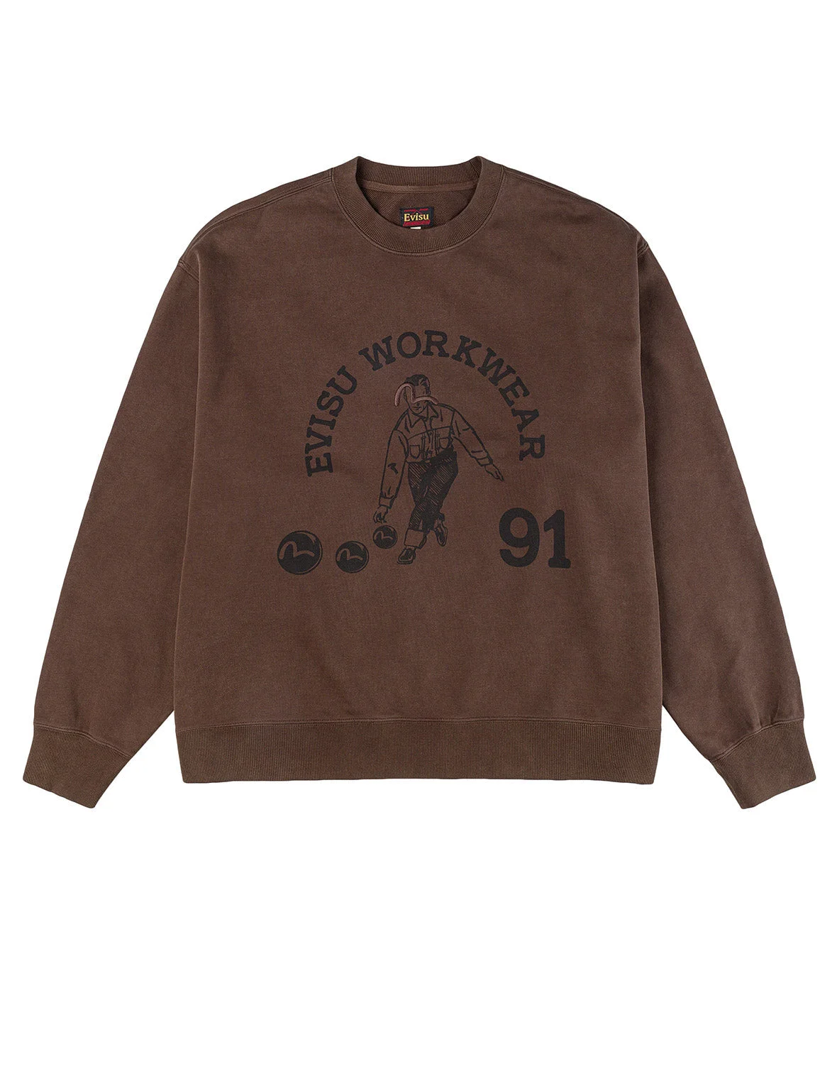 2EAEJM5SW6018RXFL This sweatshirt draws inspiration from vintage workwear in classic American culture, featuring EVISU's unique bowling print to showcase a distinctive fashion attitude. Whether paired with jeans or casual pants, it adds personality and charm to your look, making it an ideal choice for everyday wear. - Relax fit - 100% Cotton - Bowling workwear print - Seagull applique