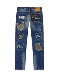 2ESHTM6JE105017DN A masterpiece of tactile layering, this denim shorts features traditional brocade patches integrated into a multi-pocket utility design. The fusion of heritage fabrics, mixed craftsmanship and signature brand motifs with modern street functionality creates a unique, high-fashion statement. - Taper fit #2017 - Shell: 100% Cotton; Pockets: 83% Polyester, 17% Cotton - Brocade patchwork - Seagull, Kamon and Evisu logo embroideries - Godhead leather patch - Multi-pocket design - Button fly