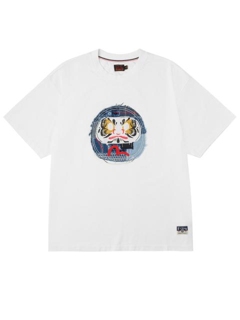 2EAHTM5TS1161XXCT This T-shirt features a striking black base, adorned with an exquisitely detailed brocade seagull applique on the chest, outlined with gold thread that accentuates the intricate craftsmanship, exuding an unparalleled sense of noble luxury. The fabric is soft and comfortable, with a regular fit that perfectly balances elegance and practicality, making it a standout piece destined to elevate your wardrobe! - Regular fit - 100% Cotton - Brocade Seagull applique - EVISU Premium Quality Kamon tag