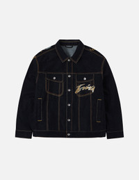 Brushstroke Daicock Print with Logo Embroidery Loose Fit Denim Jacket